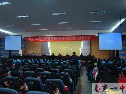 2012228日下午,南充一中新校区高2012级八百师生隆重举行“决战高考”百日誓师大会,吹响了2012年决战高考的集结号。会议由年级组长吴静老师主持,学校校长陈伦全,新区高中部主任宋奎瑞副校长、部分行政及高三年级所有师生共同参与。