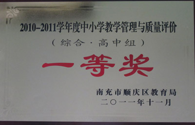 上一篇:南充一中荣获2010-2011学年度中小学教学管理与质量评价(综合.城市初中组)一等奖 下一篇:南充一中2010-2011学年度中小学教学管理与质量评价(教学质量.城市初中组)一等奖