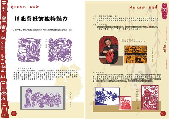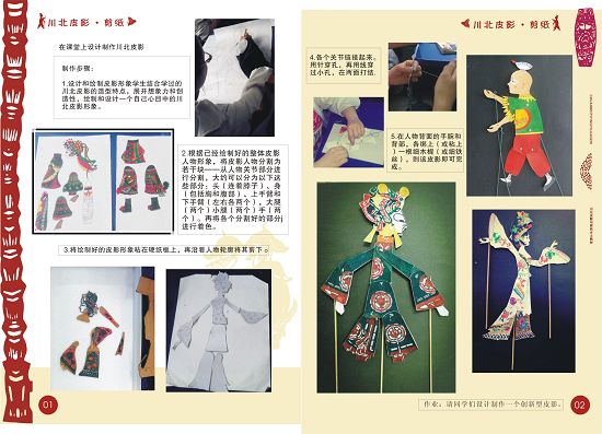 通过编写教材,老师们将自己多年来对川北剪纸及皮影的教学内容、成果、形式进行了梳理,智慧的火花不断碰撞,教材的内容不断丰富,内容的质量不断提升,使我们川北剪纸和皮影的高中美术教材愈加精美,在不久前,区教育局领导赴台湾考察学习时,还将一份打印好的高中版教材的初稿赠与了台湾美术教师,对海峡两岸文化艺术交流起到了积极的作用。