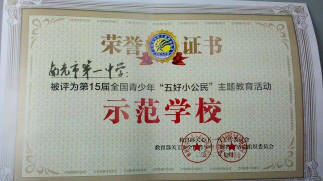 南充一中荣获第15届全国青少年“五好小公民”主题教育活动示范学校