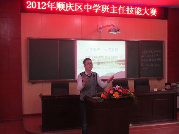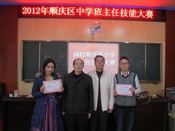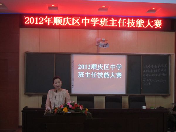 顺庆区2012年中学班主任技能大赛于12月3日—7日在我市仪凤街小学举行。来自全区36所学校的共计46名班主任代表分别在“主题演讲——做一名新时期优秀班主任”、“班队活动设计方案讲述”、“才艺展示”三个环节展开激烈角逐。