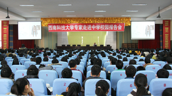 12月11日,“西南科技大学专家走进中学校园”首场报告会在我校开讲。校长陈伦全、副校长宋奎瑞等热情接待了西南科技大学国防科技学院党委书记李磊民教授、党委副书记罗刚、招生就业中心副主任胡小俊、国防学院团委书记吴栋一行人。