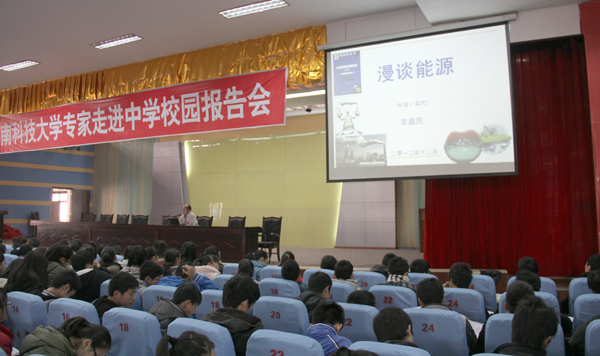 上午10:30,新校区食堂三楼大礼堂座无虚席,高2014级的1000余名学生专注的聆听了李磊民教授带来的《漫谈能源》讲座。李磊民教授从人类起源展开讲到人类社会宏观、微观的各个领域,为同学们阐述了现代科技发展的各个方面的内容。报告会后,南充一中学子学习科学基础知识、为社会科技发展做贡献的热情空前高涨。