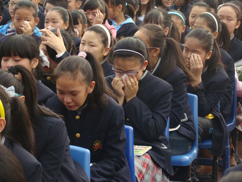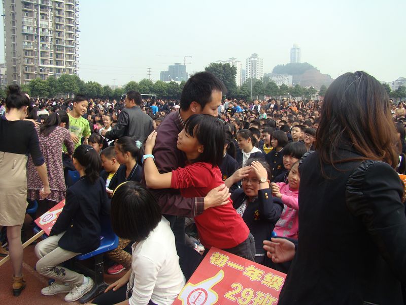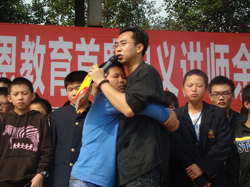演讲报告会以“不要让爱你的人失望”为主题。这场长达三个多小时震撼人心、催人奋进的精彩讲座,感染了在场的每一个人。一个个深情的感恩故事,一声声牵动心肺的召唤,令在场的每一个人泪眼迷离。同学们低头静思,追忆着、体味着平时不曾察觉的丝丝缕缕的祖国情、父母情、师生情,有国才有家、有家才有我、有师才有我的腾飞。一瞬间,他们长大了很多,明白了很多,一颗颗复苏萌动的心情不自禁地化做滴滴感恩的泪,溢出眼眶。没有谁去遮掩自己已改变的面容,没有谁愿意抬手拭去脸上的眼泪,就那么让它伴着雨水尽情地淌着。在互动环节中,许多同学踊跃走上演讲台,大声喊出自己的肺腑之言:“爸爸、妈妈、老师,我爱你们!”,一句句发自肺腑的声泪俱下之语高亢嘹亮,震撼人心,铿锵有力的誓言令在场的师生和家长动容……