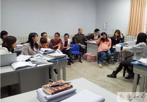 2013年10月15日, 南充一中新区初二语文组全体教师在组长唐娟老师的组织下,开展了本期第一次月考分析和集体备课活动。刘剑老师首先对第一次月考情况做了细致分析,老师们就阅卷过程中出现的问题进行了点评并提出了解决办法。大家还统一了教学进度,对教学中出现的疑难问题进行了深入探讨,全力冲刺,迎接中期考试。