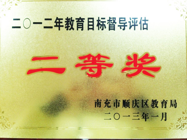 南充一中在2012年教育目标督导评估中荣获二等奖