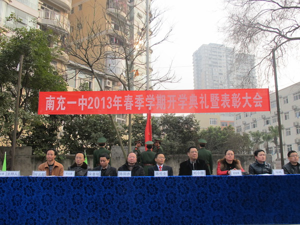 崭新的晨光,迎来了全新的开始。2013年2月26日,南充一中校园里彩旗飘扬。上午9:20,南充一中大北街校区学生处组织全体师生齐聚校园后操场,迎接2013年春季开学典礼。 本次开学典礼由叶云雄副校长主持,校领导及全体行政参加了会议。整个典礼过程热烈、庄重。