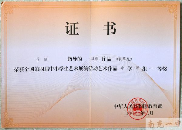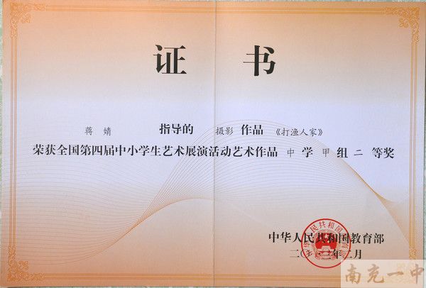我校2件美术作品参加了此次展评活动,均取得优异成绩。其中高二八班陈雪媛同学的的《扎草龙》取得了中学甲组一等奖,高二五班的刘琳同学的《打渔人家》获得了中学甲组二等奖。为我校争得了荣誉。据悉,此次我市获奖作品共4件,为历年来最好成绩,获奖数量仅次于成都。中学组2件作品全在我校,其余2件为小学组作品。