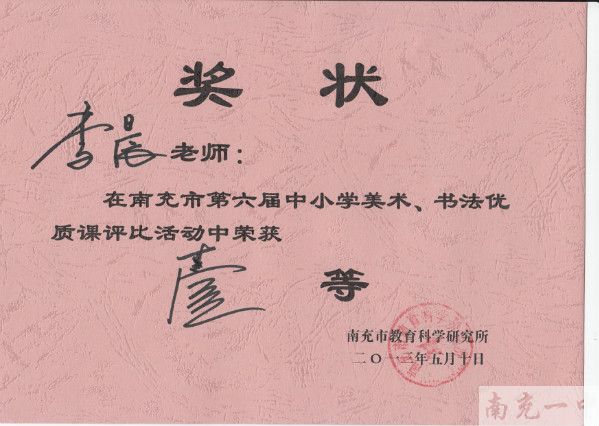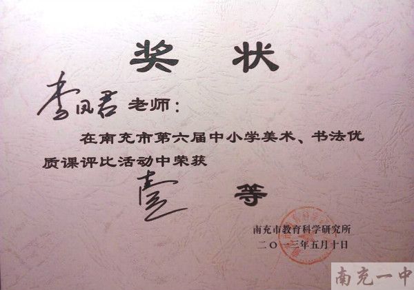 来自南充市三区六县的10名选手,经过精心准备,认真赛课,给我校同学带来了丰盛的艺术大餐。我校美术老师李晨、李凤君发挥出色,分别以《设计川北皮影的动漫形象》和《设计我们的文化衫》两堂课均获得了评委的一致认可,得到了市一等奖的殊荣。