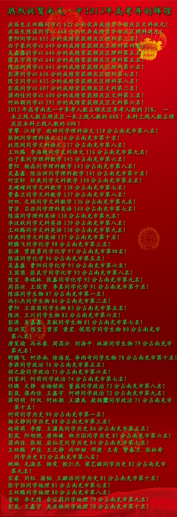 热烈祝贺南充一中2013年高考再创辉煌!