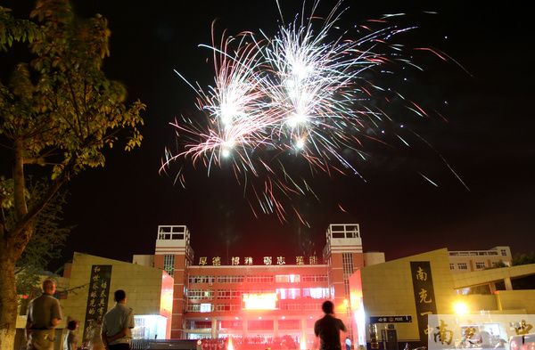 我校2013年高考再创辉煌!2013年高考南充一中一本上线111人占顺庆区一本上线167人的66%!本科上线608人占顺庆区本科上线1019人的60%!(不含艺体生)应届生王双赐同学以622分的优异成绩勇夺顺庆区文科第一名!应届生陈谋同学以668分的优异成绩勇夺顺庆区理科第一名!6月25日晚9时许,焰火晚会如期举行。全校师生纷纷聚集到操场,喜气洋洋,热闹非凡。一时间,宁静的夜空被无数绚丽的焰火映得如同白昼,璀灿夺目。好一个“火树银花不夜天”! 校园里的每个角落都迸发出无数的自豪的欢呼声、掌声、笑声,也引得家长,路人纷纷驻足观看,交相称赞。这漫天璀璨的焰火,不仅见证着我校2013年高考辉煌的喜悦和骄傲,更是对所有团结一心、拼搏进取的一中人所付出的勤劳和汗水的最高礼赞!
