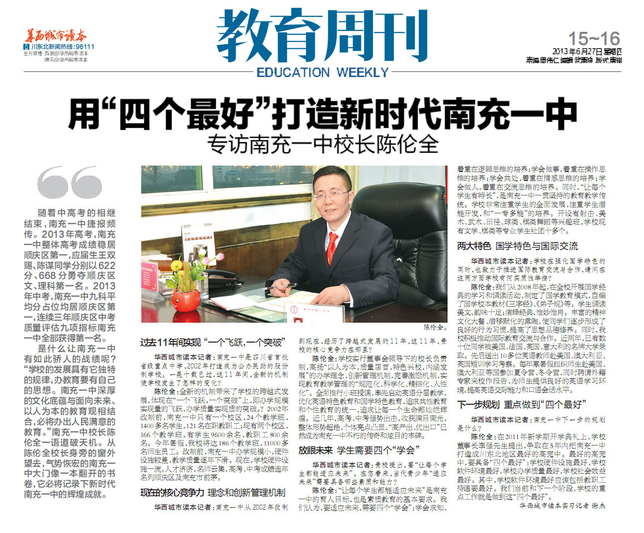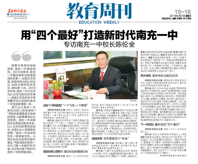 华西都市报专题"用'四个最好'打造新时代南充一中"