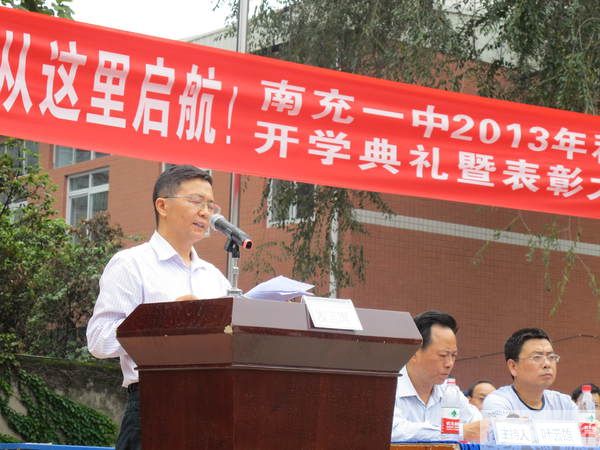开学典礼在庄严的国歌声中拉开帷幕,会议由副校长叶云雄主持,南充一中各校级领导、中层干部在主席台就坐。校长助理何云超宣读了上学期获奖学生名单,鼓励大家努力学习,再创佳绩。