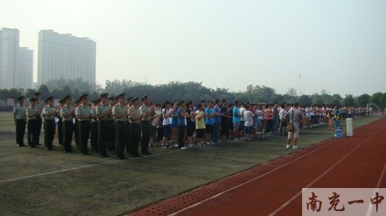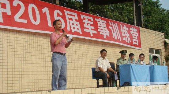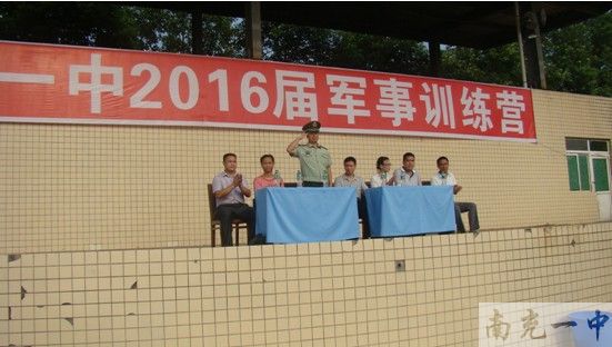 军训开营仪式在雄壮的国歌声中拉开帷幕。何云超校长助理发表了热情洋溢的军训开营讲话,首先代表学校向成为南充一中大家庭一份子的新同学表示祝贺,同时向武警8740部队首长与执训教官表示热烈的欢迎和衷心的感谢。他强调了军训之于学生的价值及意义,他指出:和平年代,我们仍然需要军人的思想作风、钢铁意志及纪律观念;严格的军训锻炼对同学们坚强意志的训练有着重要的作用:同学们在3天军训中积累起来的吃苦耐劳、永不言败、团结协作的精神将会成为自己将来学业、事业成功的基石。他强调高一新生要以“积极的心态、昂扬的斗志、严明的纪律”迎接本次军训,勇于吃苦、善于合作,为在一中学习、生活打下坚实的基础、奏响最美的序曲。