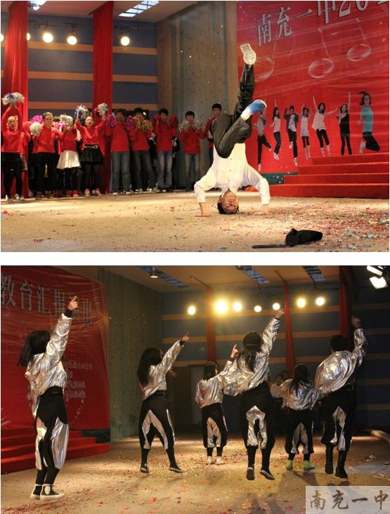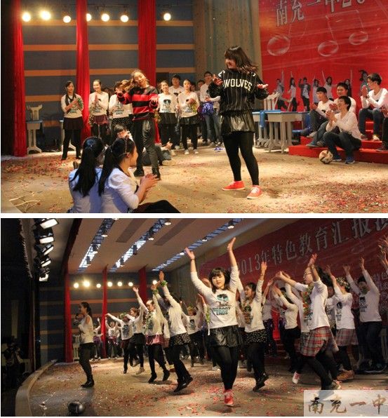 2013年12月23日下午,由南充一中特色教育办公室和团委联合举办的“南充一中2012特色教育展演”活动在新区食堂3楼会议厅隆重举行。本次活动共分三场进行,新、老校区联合表演。第一场是由初一同学参演的“国学经典诵读比赛”;第二场以是“感恩励志”为主题的校园剧比赛,由初二的同学表演;第三场是由高一年级同学参加的英语合唱比赛。