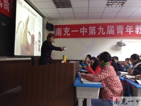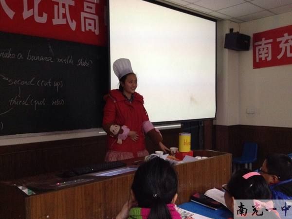 12月24日上午高一英语组的李婧文老师,初一英语组的刘莎老师,初一英语组的邱荟老师,初一数学组的陈秘老师都在竞赛的舞台上展示了自己的风采,其中引人注目的还是初一英语的刘莎老师,她的课题是《How do you make a banana milk shake》。