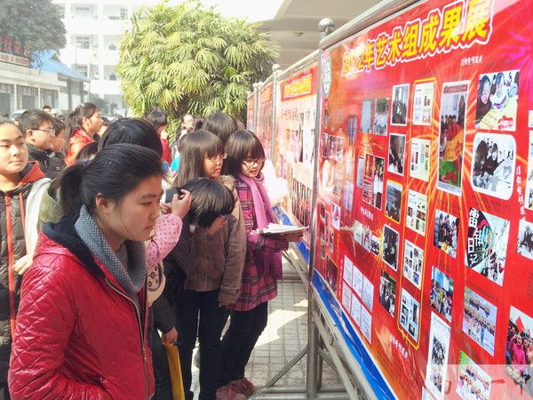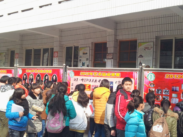 南充一中大北街校区近日在学校门口布置展板,展出了我校部分学生的摄影、绘画、书法作品以及学生亲手制作的极具特色的剪纸、皮影作品。一幅幅精美绝伦的艺术作品引得众人驻足观看。