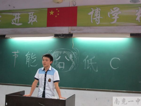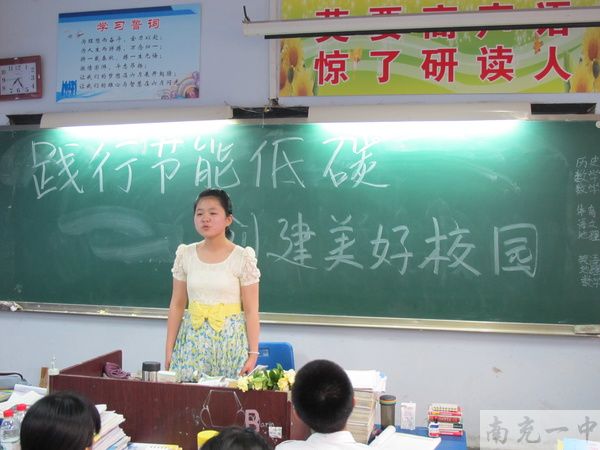 南充一中大北街校区学生处组织高一、高二学生开展以“节能低碳新生活”为主题的班会活动,号召学生共同以构建绿色、节能、低耗为主要特征的节约型学校。