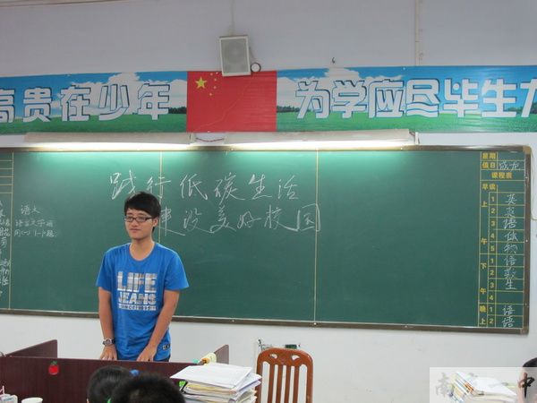 高一、高二年级各班通过演讲和讨论形式,向同学们宣传节能减排、低碳生活的重要性和必要性,号召全体师生不仅要做低碳生活的宣传者,更要做低碳生活实践者。少开一会电脑,多养一些花草,学会旧物利用,少用一次性制品,不浪费一滴水、不浪费一度电,点滴小事也是“节能减排”。