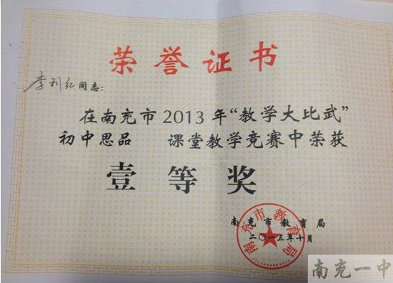 我校青年教师李利红获南充市“教学大比武”一等奖