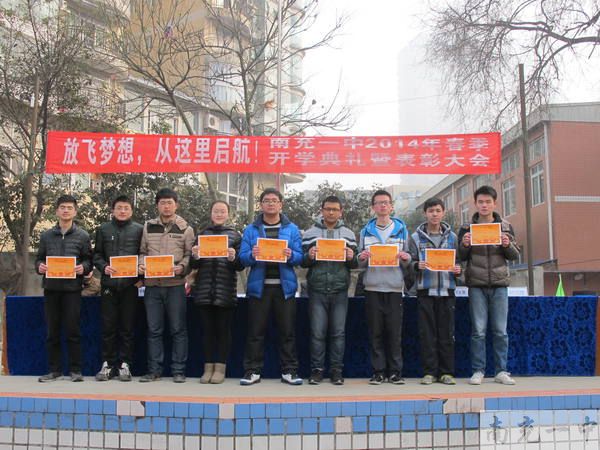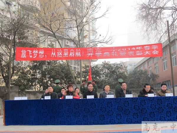 2014年2月19日9:30,南充一中大北街校区全体师生在学校后操场举行了主题为“放飞梦想,从这里起航”的开学典礼暨学生表彰大会。