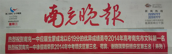 2014-06-25 来源:南充一中 科室: 文章:佚名 摄影:佚名 审核: 编辑:冷亦萧 点击:
