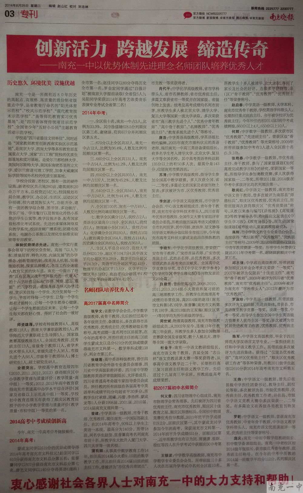 华西城市读本祝贺南充一中2014年中考、高考再创佳绩