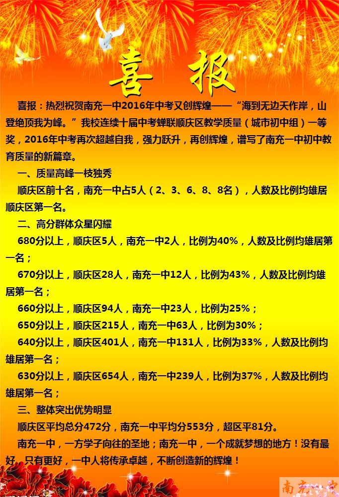 喜报:热烈祝贺南充一中2016年中考又创辉煌