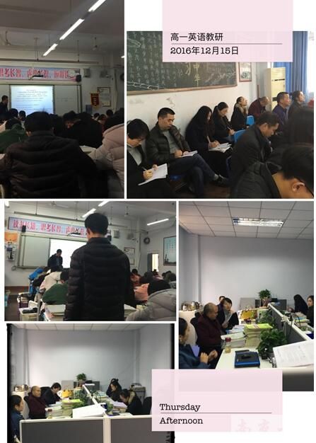 2016年12月15日下午第一节,高一英语备课组开展了定期的公开课活动,此次公开课由张秀峰老师在高2019届18班进行,这堂课的内容为必修2的Module 1 Our Body and Healthy Habits的reading部分,张老师首先以两个问题开始了本堂课的教学,即What's your favorite food? Do you often take exercise? 同学们都能积极地与张老师互动,随后进入到本堂课的重点reading, 首先和学生一起复习了单词,之后以任务教学的方法让同学们完成阅读的同时顺利完成布置的各项任务。整堂课容量很大,教学过程也很流畅,学生能紧跟老师的步伐,总体来说是一堂不错的示范课。课后,组上的所有老师也进行了讨论和交流,大家就reading的教学方法进行了探讨。