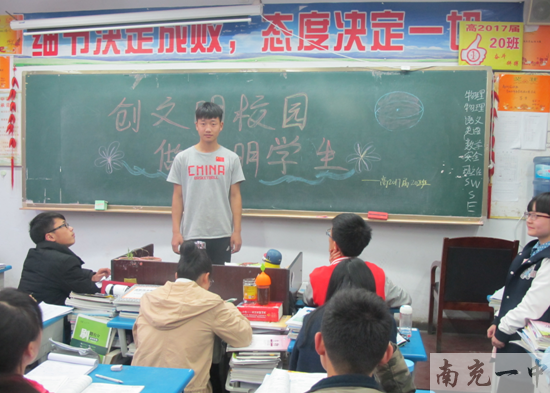 为了进一步提高学生素质,创建校园文明,我校新校区学生处于2016年3月14日下午组织高一、高二各班召开了以“创建文明校园,争做文明学生”为主题的主题班会。