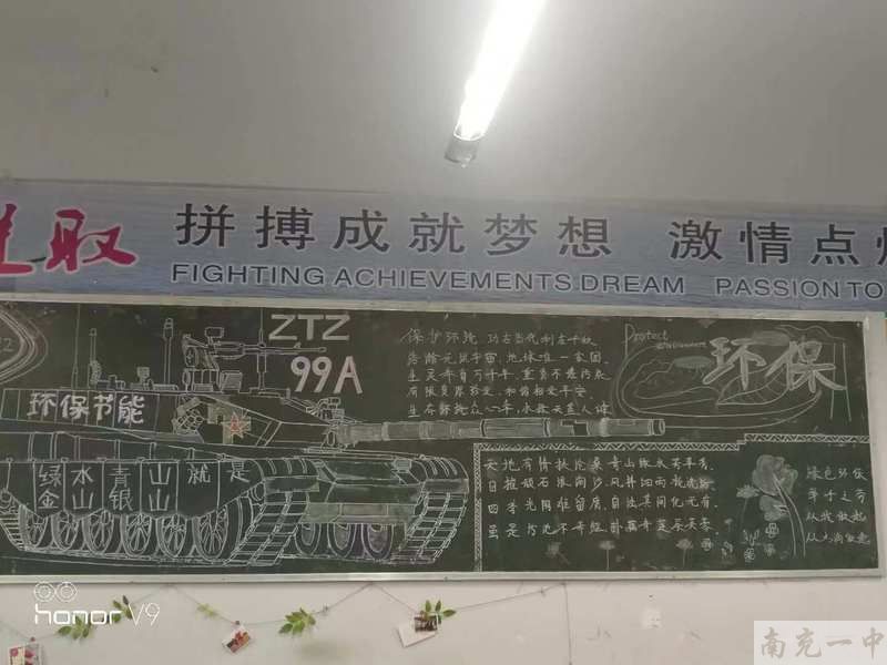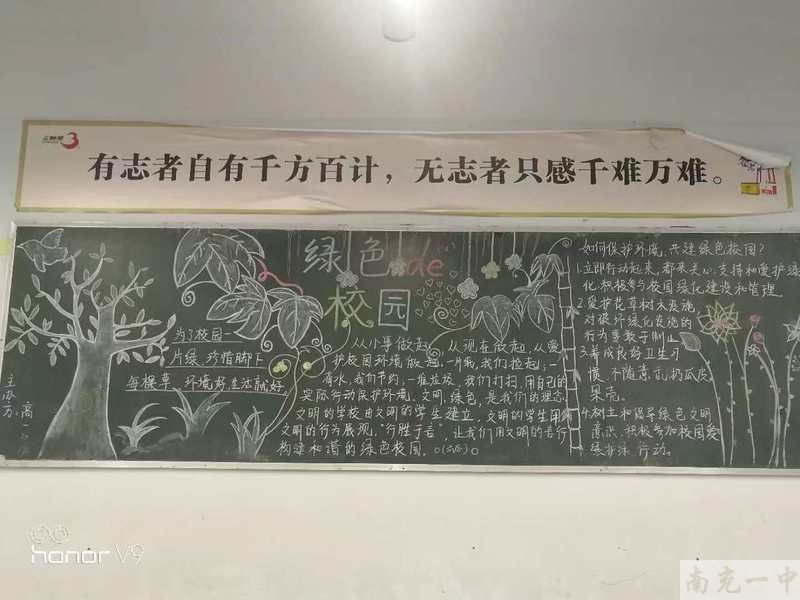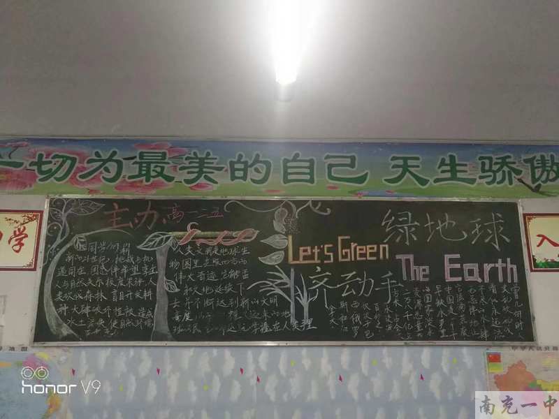 为创建绿色的校园环境,营造良好的学习环境。11月5日,南充一中新区学生处组织初一、初二、高一、高二年级开展了“保护环境,创绿色校园”的黑板报展评活动。