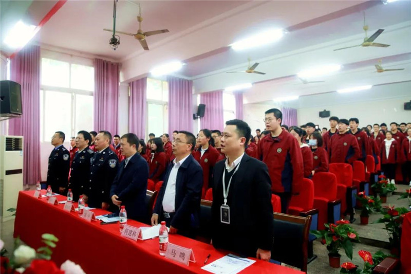 上午10点30分,仪式在庄严的国歌声中正式拉开序幕,到场师生和与会领导都整装起立,高唱国歌。