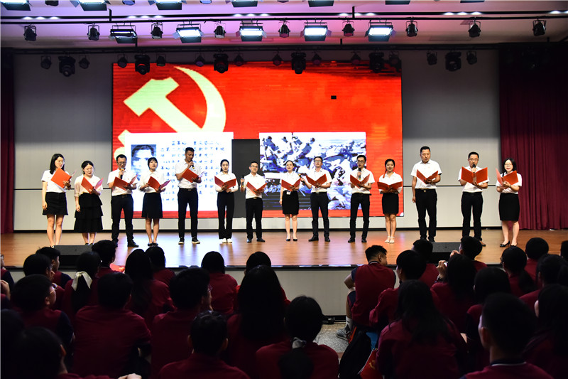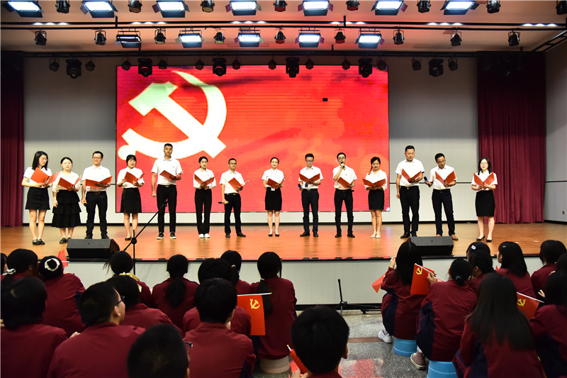 “我志愿加入中国共产党,拥护党的纲领,遵守党的章程,履行党员义务,执行党的决定,严守党的纪律,保守党的秘密,对党忠诚,积极工作,为共产主义奋斗终身,随时准备为党和人民牺牲一切,永不叛党。”党员们面对鲜红党旗,庄严举起右拳,重温入党誓词。老师们以最平凡的语言,最朴实的情感,抒发着对党和祖国的赤胆忠诚,用一腔热血表达着对教育事业的无限热爱。
