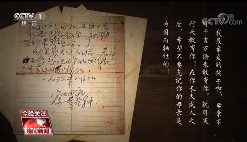 在你长大成人之后,希望不要忘记你的母亲是为国而牺牲的!
