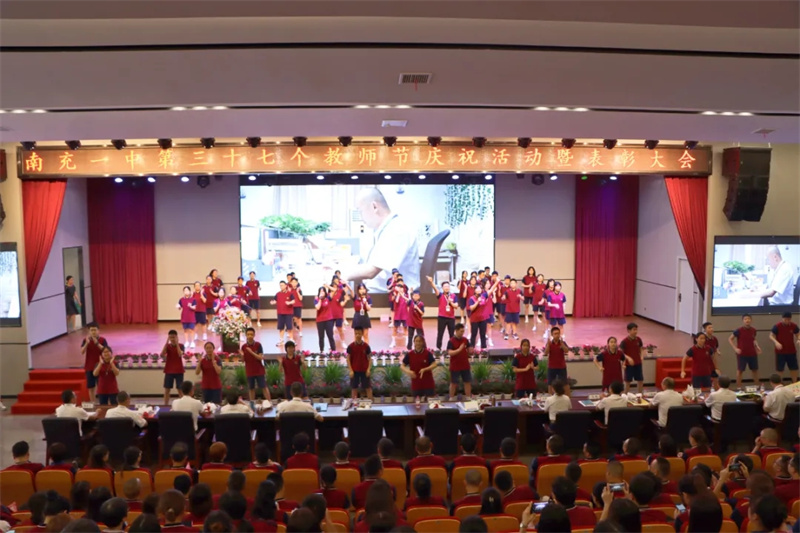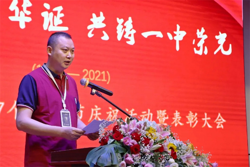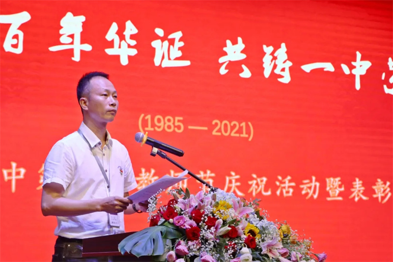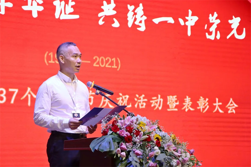 成明贤书记宣读南充一中《关于第三十七个教师节表彰先进的决定》、《关于南充一中2020-2021年度宣传工作表彰的决定》