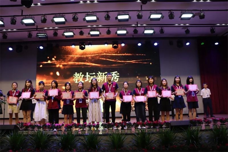特殊贡献奖、优秀班主任、优秀教师、教坛新秀等荣誉获得者走上领奖台,留影记录荣誉时刻!
