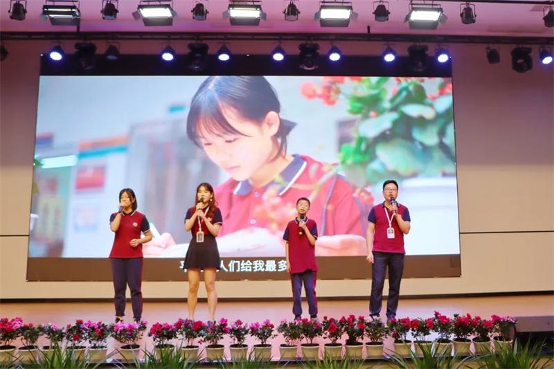 感谢您——老师,是您让我们懂得,生活能像一张纸一样轻薄,也可以像大海一样深邃。”初三29班学生代表王怡萱向老师们表达了敬意和感谢。