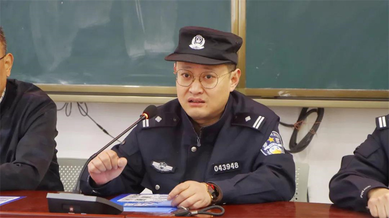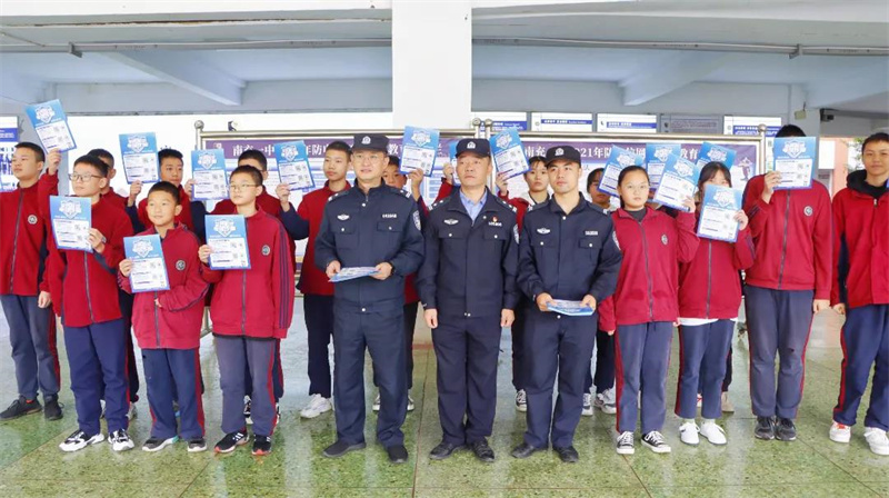 为有效保护我校全体教职工与全体学生的财产安全与切身利益,全面提高我校全体教职工与学生的警惕性与防诈骗能力,从根本上减少诈骗事件的发生。2021年10月21日上午,南充市顺庆区公安分局新建派出所弋晓东、何侠、任宇童、吴林等四位警官来到我校进行反电信诈骗宣传暨APP安装宣传。