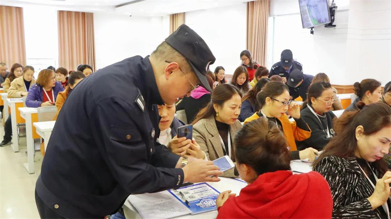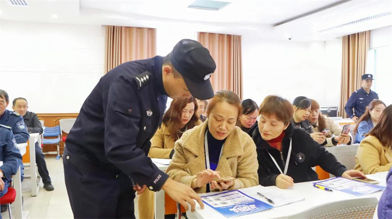 会上,弋晓东警官选取典型案例,对“杀猪盘”“刷单”“贷款”等当下流行的诈骗方式进行了详细的介绍,生动形象地描述了典型诈骗的新局势,新手段以及防诈骗知识和技巧。了解相关知识以后,四位干警手把手引导各位教职工安装“国家反诈中心”APP。