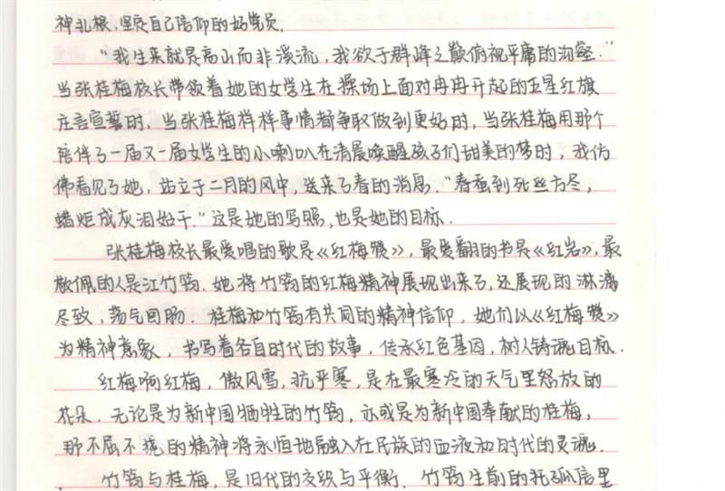 爱国主义引导着学生养成修身律己的习惯,有利于树立崇德向善的社会风尚。南充一中本部以培养和践行社会主义核心价值观为目的,布置学生观看《故事里的中国》《开讲啦》,并撰写观后感。学生们积极参与,深刻感悟。