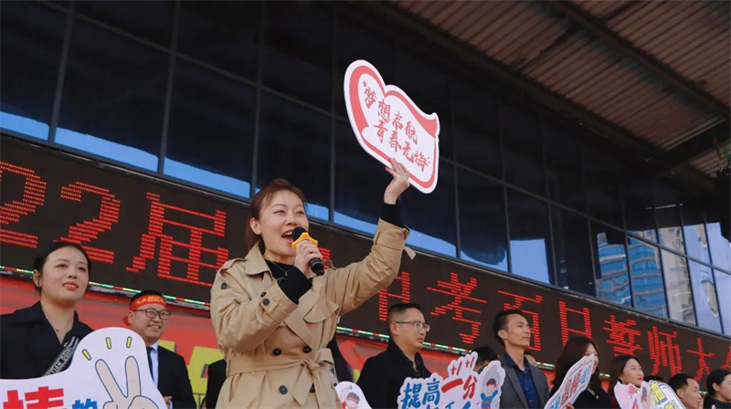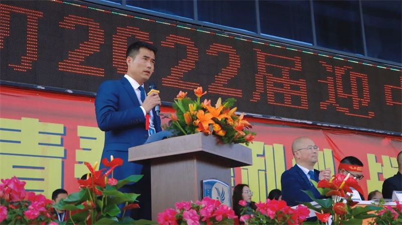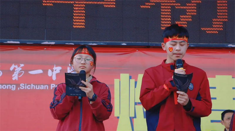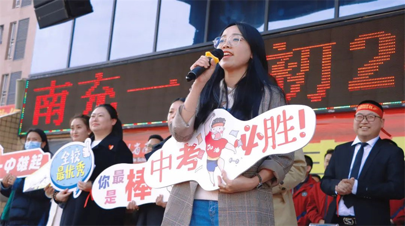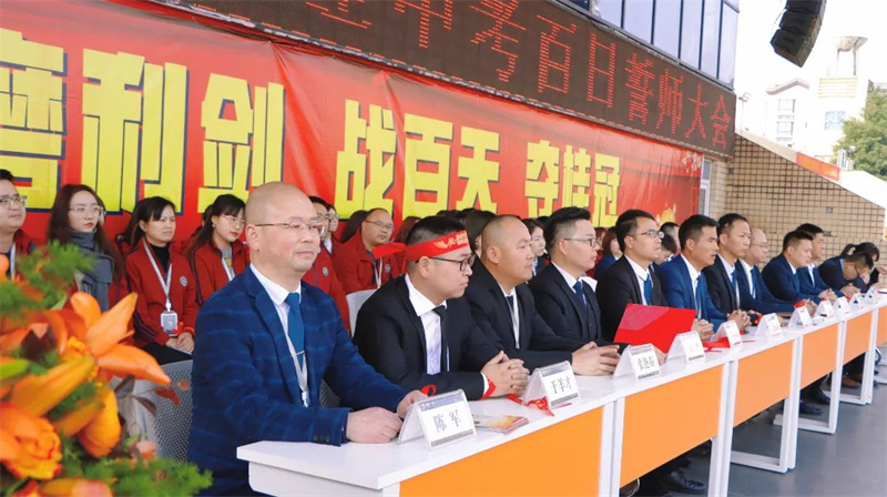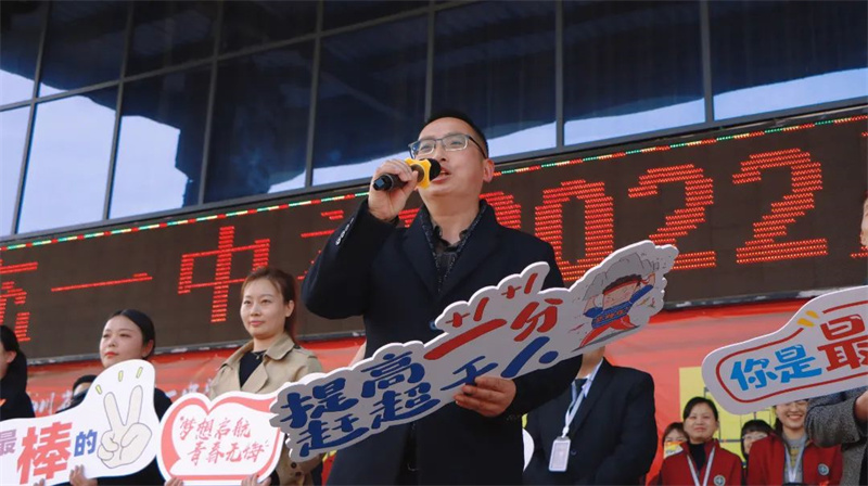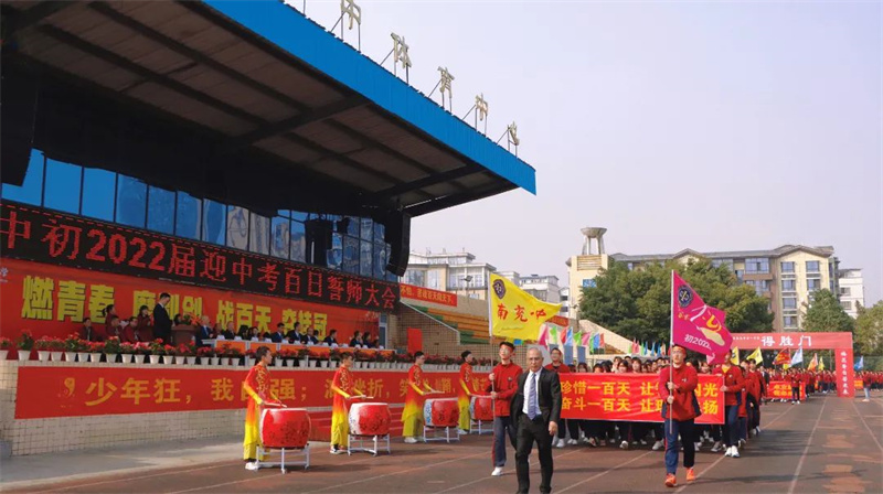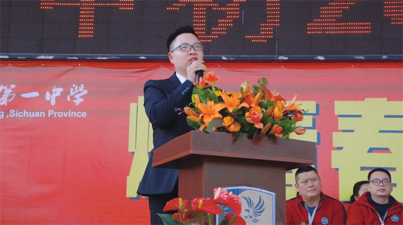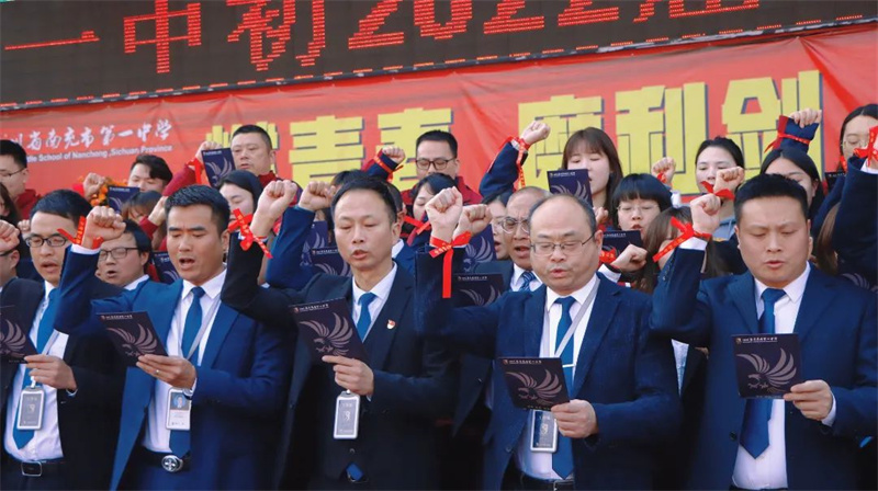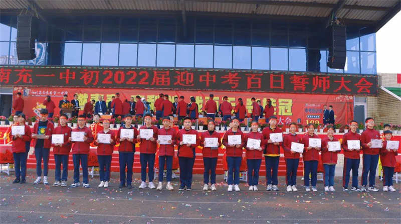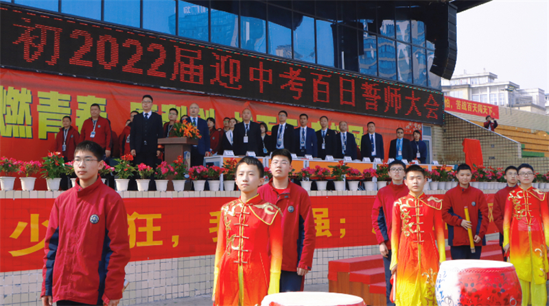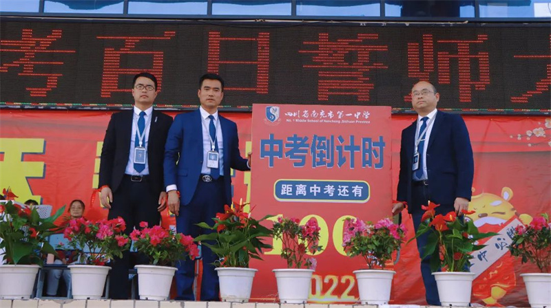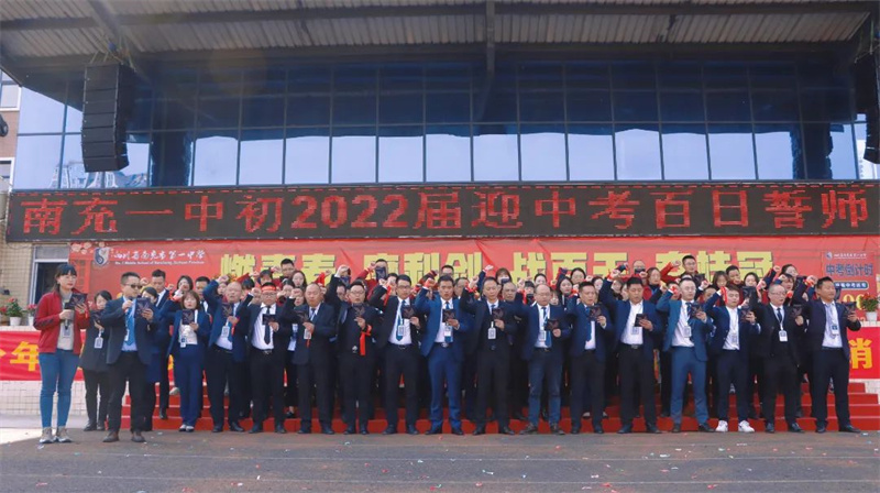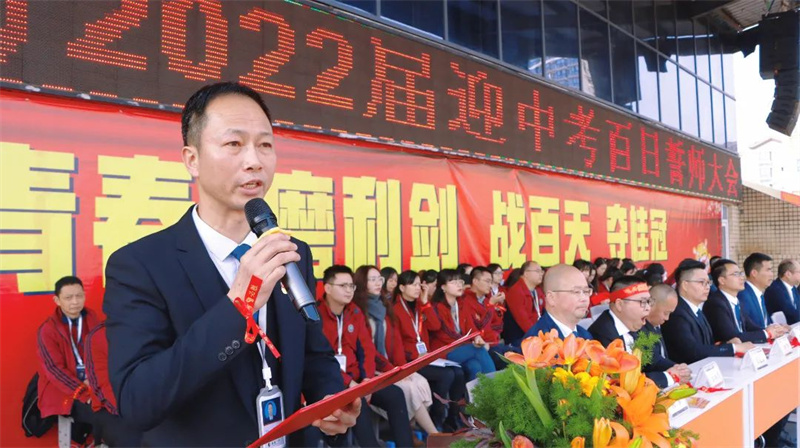 南充一中党委书记、常务副校长成明贤发表了慷慨激昂的讲话。他说:一百天够长,足够重塑一个自我,足够打造一个未来!一百天也很短,短得不能有半点迟疑,不能有一分一秒的虚度与彷徨!同时,他还把最诚挚的鼓励送给全体初三学生:第一,分秒必争为梦想,少年壮志当凌云;第二,科学备考提效率,良师益友助辉煌;第三,千锤百炼战中考,长风破浪六月时。成校长鼓舞人心的话语,使全场热情高涨!
