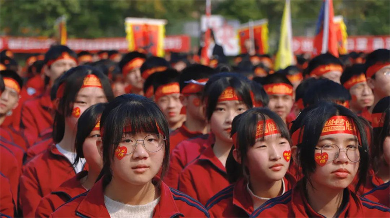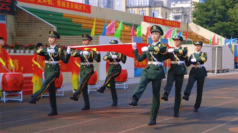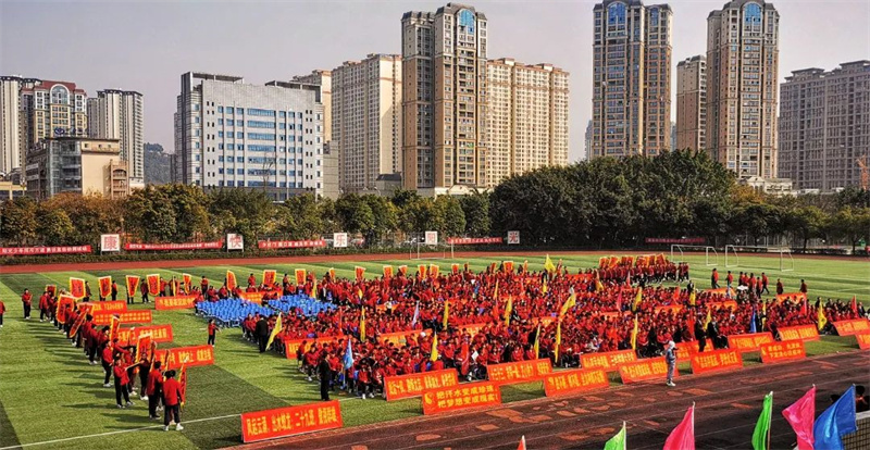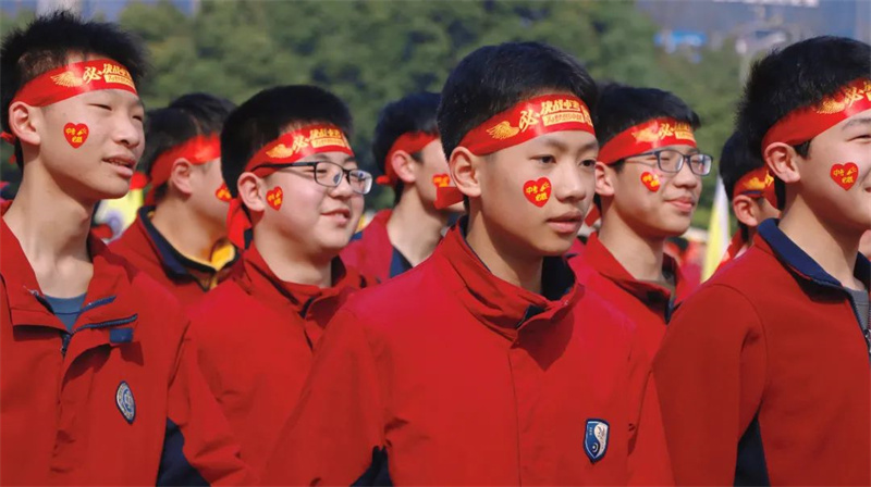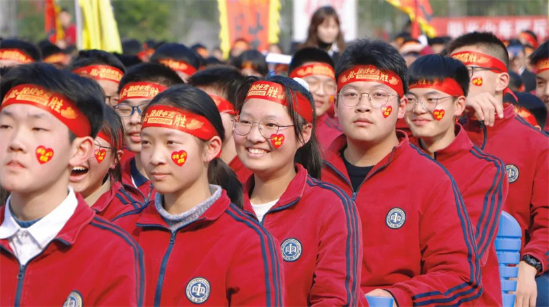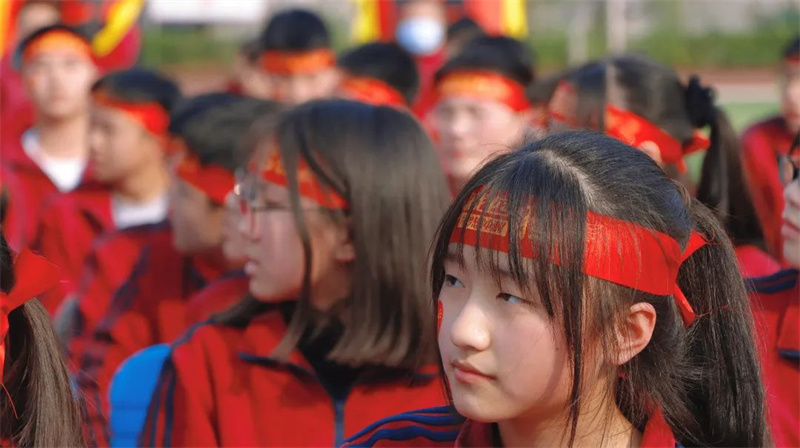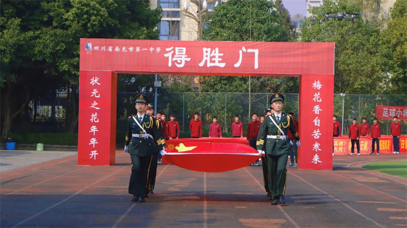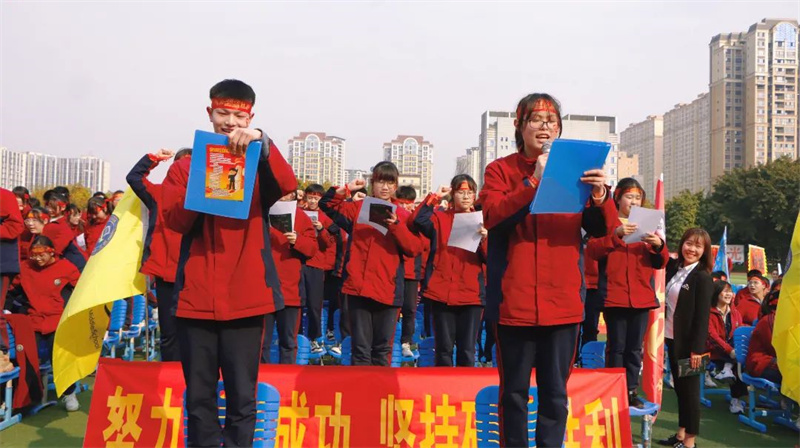 足球场上,旌旗招展,标语醒目;队列整齐,锣鼓喧天;同学们生龙活虎,精神抖擞!英姿飒爽的国旗护卫队铿锵有力地迈过主席台;横幅方阵、各班级方阵踏着整齐而矫健的步伐,喊着响亮的口号,器宇轩昂地从象征着荣耀与辉煌的“得胜门”迈入“金榜门”。