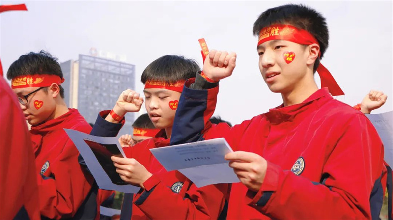 在这特殊的日子,初三全体教师举起右拳,庄严宣誓:“用挚爱关注每一位学子,用鼓励坚定每一个脚步,用奉献影响每一个人生,用拼搏创造每一个幸福。奋战初三,助学生金榜题名!奋战初三,铸就一中新辉煌!”