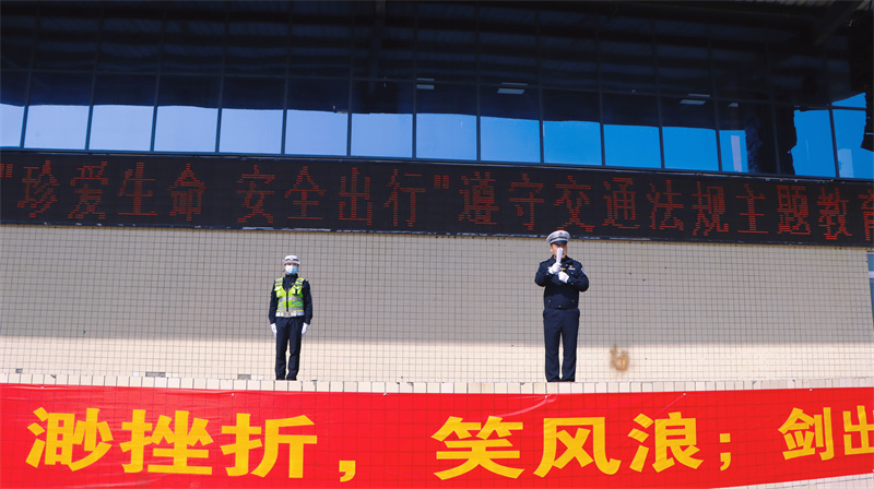 守法规、知礼让、讲安全。为使学生们掌握交通法律法规,增强交通安全意识,培养自我保护的能力,南充一中于3月7日上午的升旗仪式上,邀请了南充市交警支队四大队事故中队的张利伟警官为全校学生开展"珍爱生命 安全出行"交通法规教育大会。