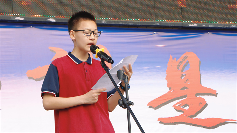 优秀学生代表初一29班邓杨同学真诚地向为同学们的成长、进步默默奉献的老师表示感谢,并向同学们分享了学习感悟和经验,着重强调了学习的态度、方法和勤奋。最后邓杨同学表示将戒骄戒躁,积极进取,再接再厉。见贤思齐,勇往直前,长路漫漫,相信各位同学一定能够积跬步而至千里,积小流而成江海。
