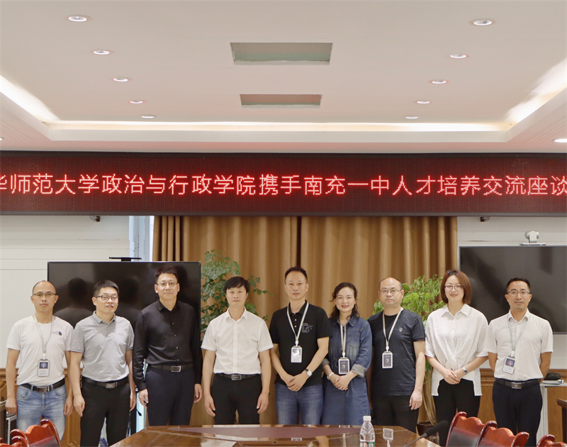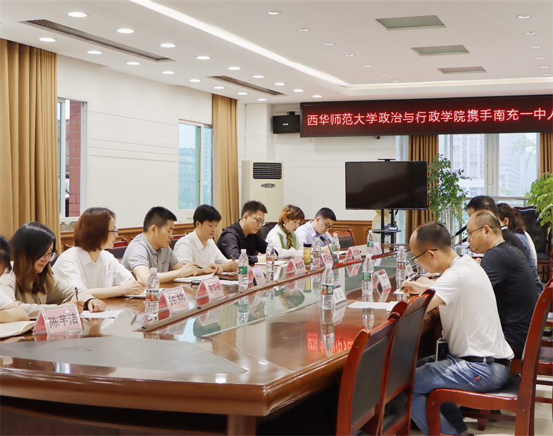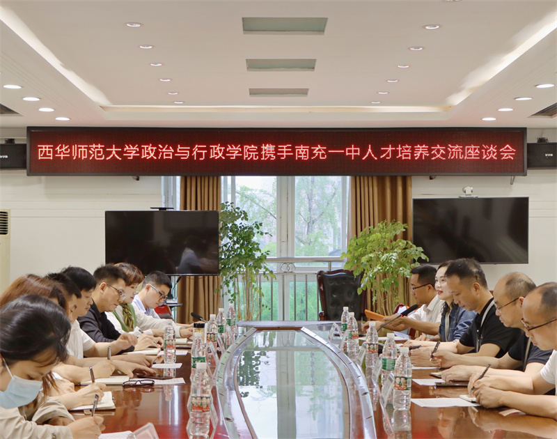 为加强高校与中学在政治教育领域的合作,建立双向交流长效机制的合作模式,构建高校——中学合作共同体,进一步提升人才培养质量,5月25日,南充一中与西华师范大学政治与行政学院联袂,召开了“西华师范大学政治与行政学院携手南充一中人才培养交流座谈会”。西华师范大学政治与行政学院院长黄祖军,副院长罗开文等一行莅临我校开展考察交流,南充一中党委书记、常务副校长成明贤,副校长王洪秀、王银波及教学研究中心全体领导参加座谈会,校长助理刘永兴主持会议。