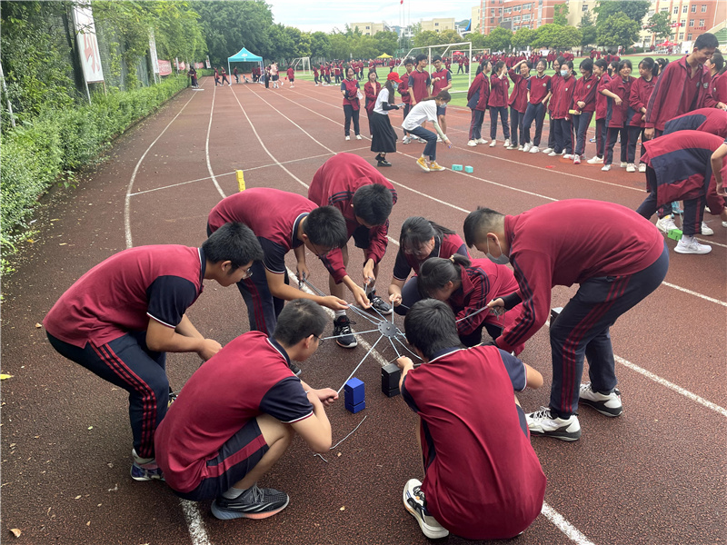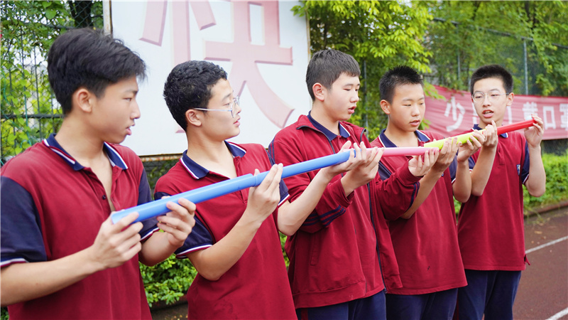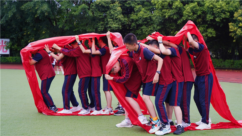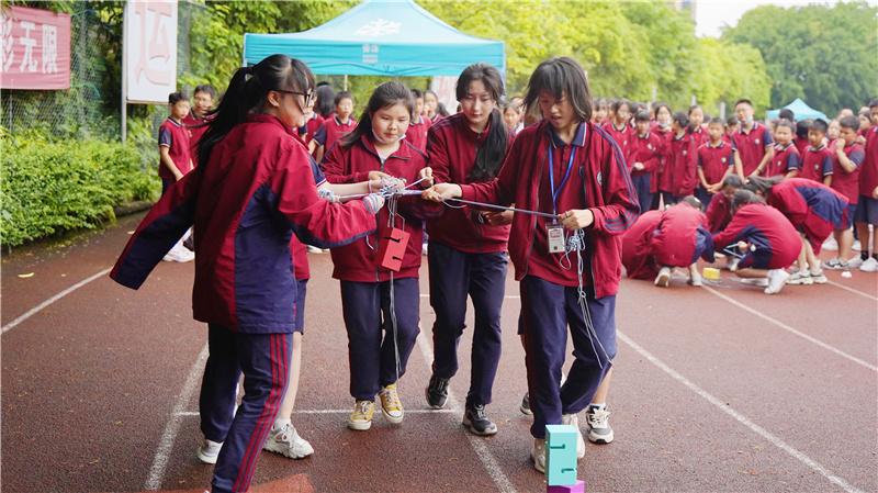 “不倒森林”锁定默契,集体换杆的过程中考验敏捷度和整体配合。