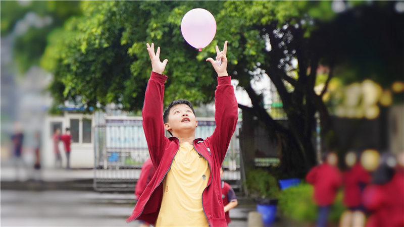 “气球接力”迎风飞舞,我们只管追逐,把它交与你的手中。