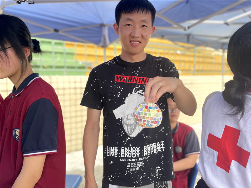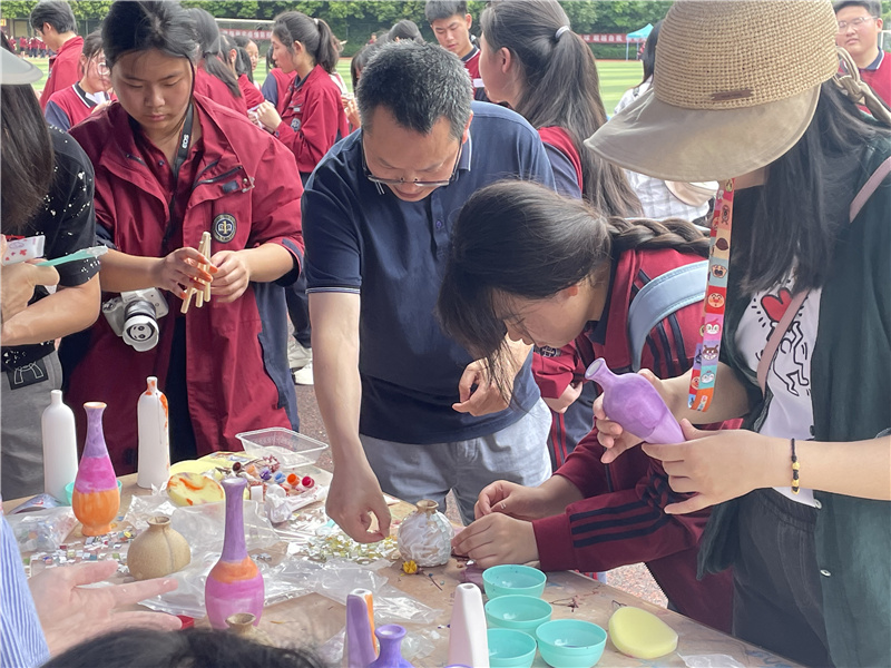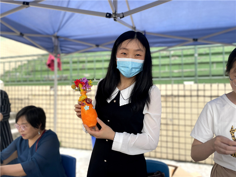 表达性艺术治疗的范畴覆盖在教师活动区,目的在于充分展开、呈现主观体验,通过制作永生花团扇、马赛克花瓶、水粉画工花瓶,使大家在DIY的过程中能认识并触及真正的自我。