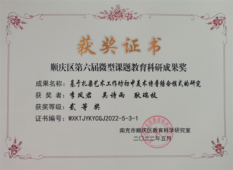 向此次在“南充市顺庆区第六届微型教育科研课题成果”评选活动中获奖的六位教师表示热烈的祝贺!